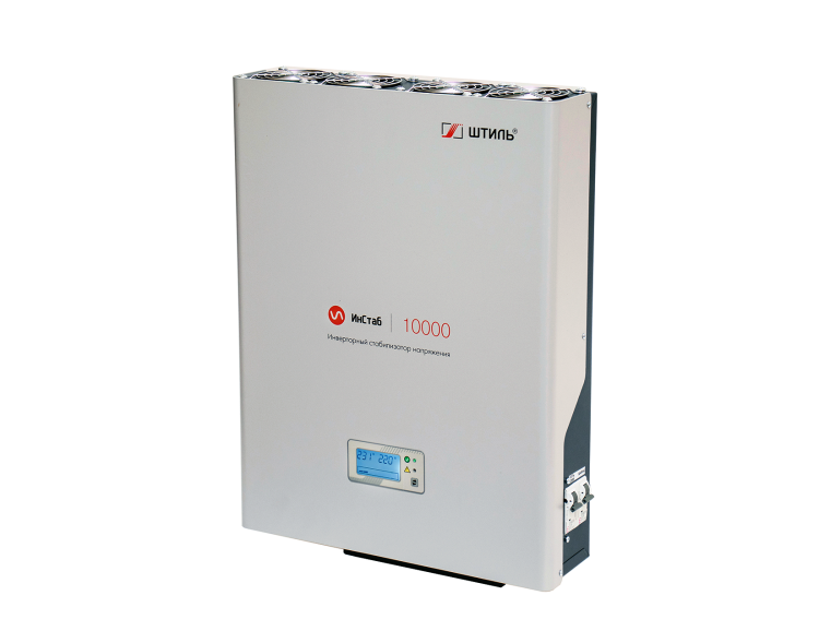 Однофазный инверторный стабилизатор напряжения IS10000 разработан специально для российских сетей и предназначен для защиты от нестабильного напряжения отдельных приборов или группы оборудования суммарной потребляемой мощностью до 10 кВА/ 9 кВт, в частности: систем отопления; насосного оборудования; систем вентиляции и кондиционирования; мультимедийной техники; компьютерного оборудования и оргтехники; дорогостоящих бытовых приборов; электроинструментов; систем пожарной безопасности и видеонаблюдения. Стабилизатор разработан и производится в России, он отлично адаптирован под специфику работы электроприборов в российских электросетях. Качество его работы подтверждено сертификатом соответствия Таможенного союза (EAC). Модель IS10000 является прибором нового поколения, обладающим улучшенными техническими характеристиками. Стабилизатор отличается от других типов устройств тем, что обладает принципом двойного преобразования энергии, который обеспечивает: непрерывную и бесступенчатую стабилизацию напряжения в расширенном диапазоне (90-310 В); мгновенную реакцию на отклонения параметров сети (0 мс); энергоснабжение нагрузки напряжением с идеальным синусом и высокой точностью ( 2%); бесперебойное питание электроприборов при кратковременных пропаданиях электричества (до 200 мс). IS10000 оснащён комбинированной системой охлаждения (конвенционной/вентиляторной). Вентиляторы включаются в работу поэтапно и только при достижении внутренней температуры стабилизатора критической отметки.