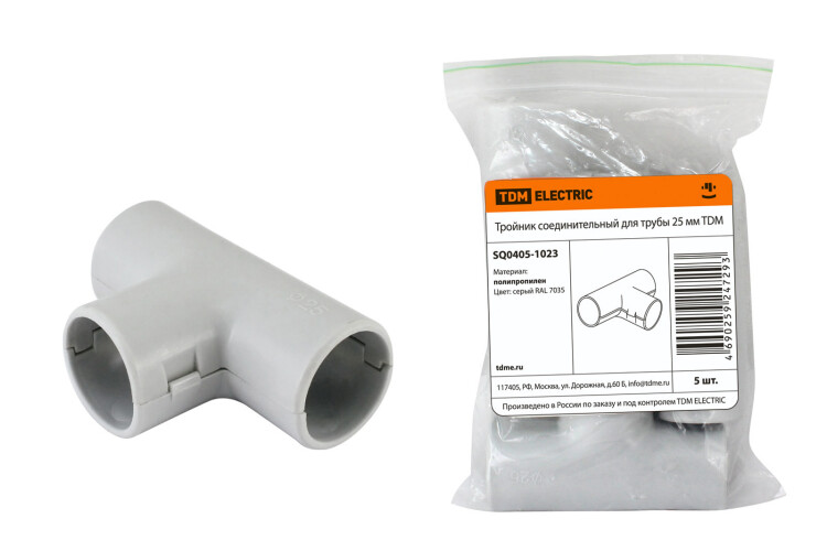 "TDM" Тройник для пласт. трубы серый IP40 d25мм 5шт/уп