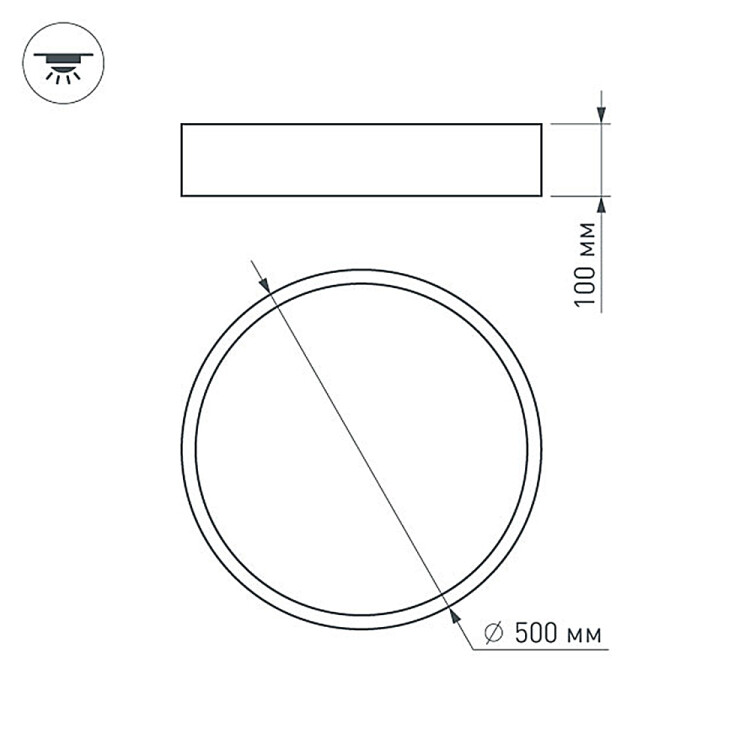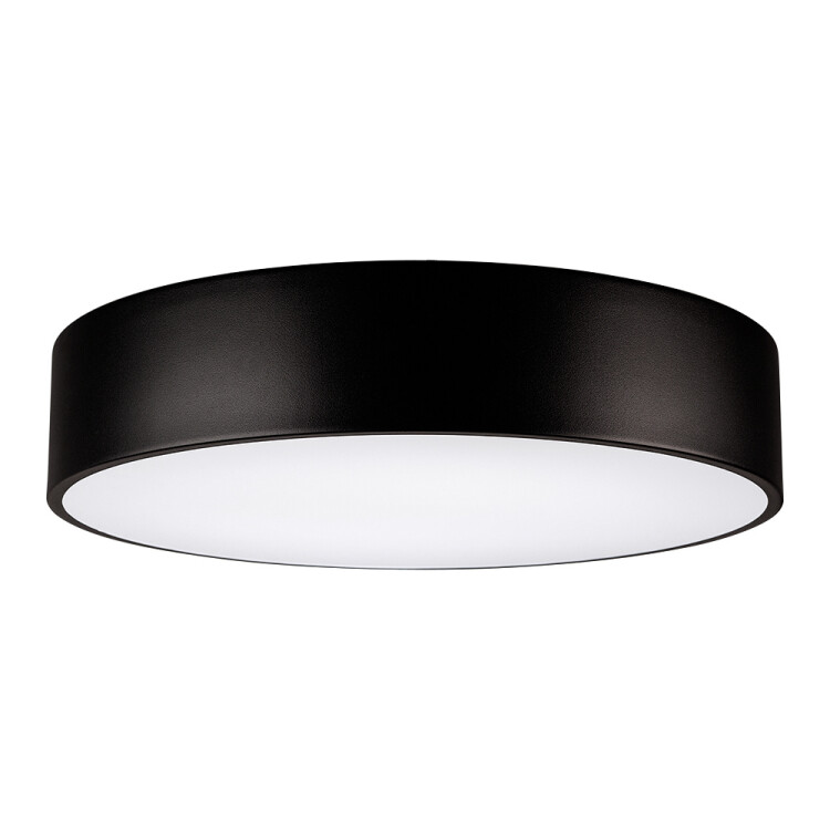 Накладной интерьерный светильник. Мощность 35 Вт, св. поток 3150 лм, 90 лм/Вт, дневной 4000 K, CRI>80, угол 120°, напряжение питания 230 В. Черный круглый корпус из алюминия, степень защиты IP20. Размер: диаметр 500 мм, высота 100 мм. Монтаж накладной. Драйвер 30-42 В, 950 мА, пульсация