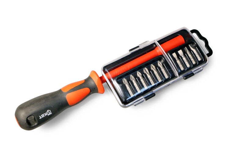 Состав набора:;биты шлиц: SL4, SL5, SL6, SL7;биты PH: PH1, PH2, PH3;биты PZ: PZ1, PZ2, PZ3;диэлектрическая отвертка с длиной стержня 125 мм;Для работы под напряжением до 1000 В;Материал бит: хром-молибденовая сталь;Намагниченный держатель бит с дополнительной пружинной фиксацией;Анатомическая двухкомпонентная рукоятка;Оптимальная передача осевого усилия;Эргономичный дизайн рукоятки обеспечивает максимальный комфорт при работе;Вставки из мягкого прорезиненного материала предотвращают проскальзывание отвертки в руке и обеспечивают максимальный крутящий момент;Специальная форма рукояток с защитой от скатывания с наклонной поверхности;Упаковка: пластиковый кейс;Вес набора: 220 г;