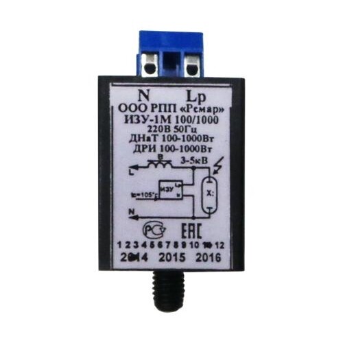 ИЗУ-1М 100/1000 - импульсные зажигающие устройства для натриевых ламп высокого давления типа ДНаТ мощностью от 100 Вт. до 1000Вт и зажигания металлогалогенных и металлогалогенных зеркальных ламп высокого давления типа ДРИ и ДРИЗ мощностью от 100 до 1000 Вт при включении их с (дросселем) индуктивными (электромагнитными балластами) в сети переменного тока с напряжением 220В и частотой 50 Гц.