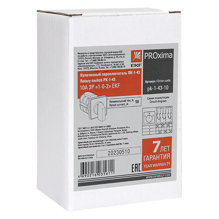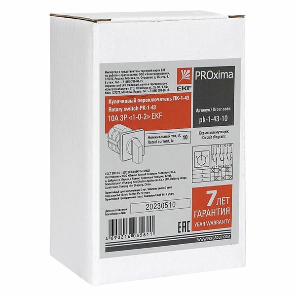 Кулачковые переключатели ПК EKF PROxima представляют собой механические коммутационные аппараты. Рассчитаны на применение в цепях переменного тока номинальным напряжением до 400 В и частотой 50/60 Гц. Благодаря повышенному содержанию серебра в контактах достигается их пониженное переходное сопротивление и повышенная устойчивость к воздействию внешней среды. Выпускается несколько исполнений кулачковых переключателей: • ПК-1 – стандартный кулачковый переключатель с различными схемами коммутации и разным количеством полюсов; • ПК-2 – трехфазный кулачковый переключатель с усовершенствованной контактной группой (выключатель нагрузки); • ПК-3 – трехфазный кулачковый переключатель в защитном боксе IP 54 (выключатель нагрузки). Переключатели ПК-1 и ПК-2 выпускаются с передним креплением. Устанавливаются на переднюю панель щитового оборудования, пульт управления и т. п. Переключатели ПК-3 с задним креплением устанавливаются на монтажную панель.