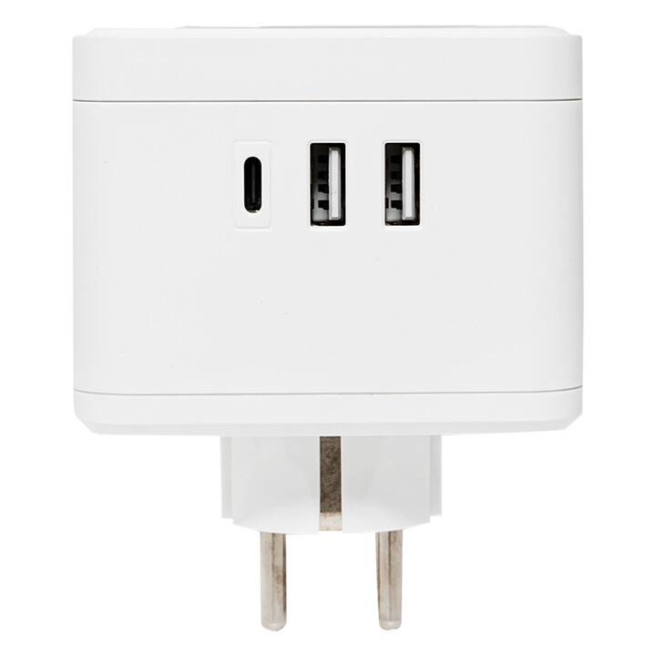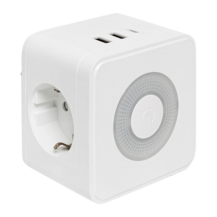 Тройник EKF серии Куб предназначен для подключения к электрической сети всех видов бытовой и офисной техники, для зарядки и питания устройств через порты USB, а также для подсветки помещений в качестве ночника