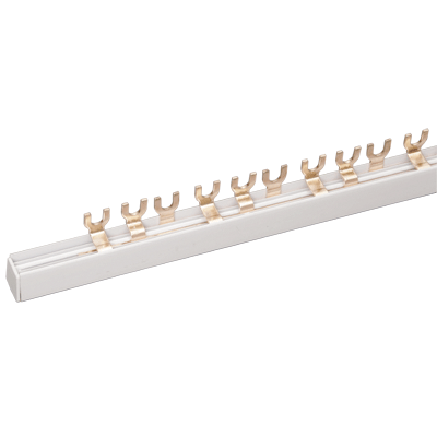 Применяются для удобного и безопасного соединения групп: ВА (выключатели автоматические), АД (автоматы дифференциальные), ВД (выключатели дифференциальные), ВН (выключатели нагрузки). Шины с шагом 18 мм предназначены для коммутации аппаратуры шириной, кратной одному модулю, шины с шагом 27 мм предназначены для коммутации изделий шириной, кратной полутора модулям. Шины, р ассчитанные на номинальный ток 100 А, могут быть использованы с номинальным током 125 А, если вводной автомат подключать по центру. Для полуторамодульных шин имеются боковые заглушки.