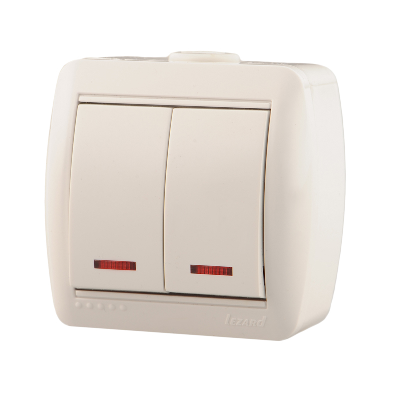 NATA Выключатель 2-кл. с подсветкой белый LEZARD (10шт/120шт)