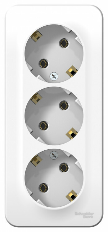 Розетка Systeme Electric (ранее Schneider Electric) BLANCA (белый, открытой установки) трехместная, без шторок, с заземлением и изолирующей пластиной предназначена для сетей до 250В, на ток до 16А. Трехместная розетка позволяет подключить три устройства в одном месте. Заземление обеспечивает безопасность при косвенном прикосновении. Она изготовлена из ABS-пластика, проста в установке и удобна в примене нии.