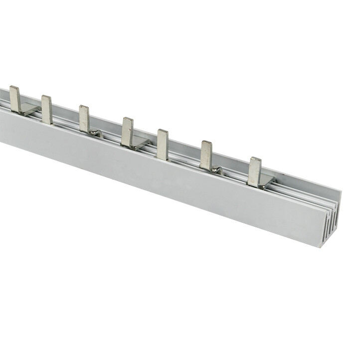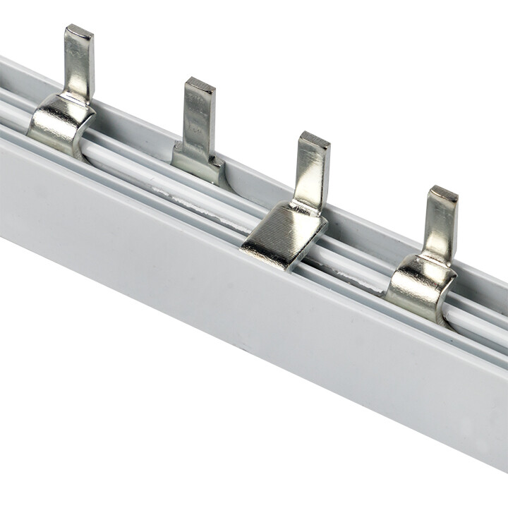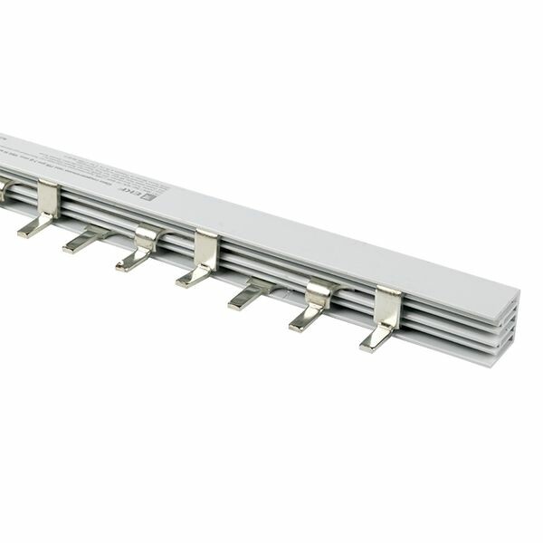 Шины соединительные представляют собой пластины, выполненные из меди (шины на 100 А – из луженой меди), закрепленные в корпусе из диэлектрического материала, не поддерживающего горение, и выпускаются стандартной длиной 1 метр. Шины соединительные делятся на два типа - FORK («вилка») и PIN («гребенка») на номинальные токи 63 и 100 А. Могут быть выполнены в одно- двух- трех- и четырехполюсном исполнений.