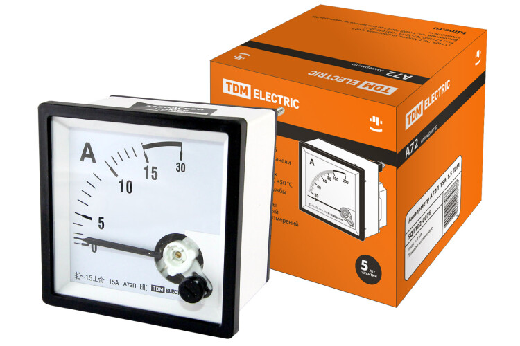 Назначение:br/Для измерения силы тока и напряжения в однофазных электрических цепях переменного тока.br/Применение:br/В низковольтных комплектных устройствах распределительных электрических сетей жилых, общественных и производственных объектах.br/Преимущества:br/Все приборы внесены в государственный реестр средств измерений и имеют свидетельство типа CN.C.34.004.A 45415.Все приборы поверенные и имеют соответствующие штампы на корпусе и в паспорте.Полностью совместимы с трансформаторами тока ТТН TDM ELECTRIC.Самозатухающий пластик обеспечивает пожаро- и электробезопасность.Для амперметров А72 в наличии сменные шкалы, что позволяет оптимизировать складские запасы по данной серии.Для А72, А96, В72, В96, внешние присоединительные зажимы закрываются защитной прозрачной крышкой, обеспечивающей электробезопасность.А80, В80 устанавливаются в круглый вырез в щитке, подходят для щитков, изготовленных старыми советскими вырубными штампами;А80 и В80 позиционируются как бюджетная серия амперметров и вольтметров, они имеет более низкий класс точности 2,5 и цену на 30% ниже стандартной серии А72, А96, В72, В96;br/Материалы:br/Корпус из негорючего самозатухающего пластика.br/