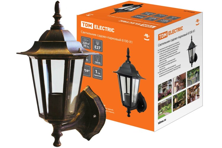 Светильник 6100-11 садово-парковый шестигранник, 100Вт, вверх, бронза TDM