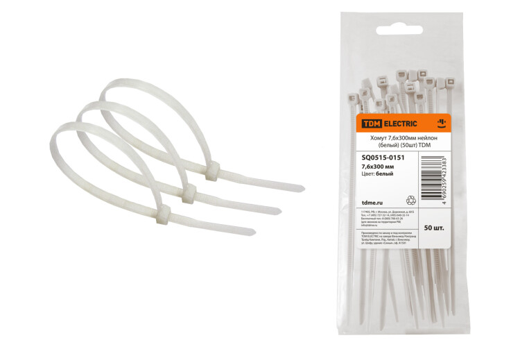 Хомут 7,6х300мм нейлон (белый) TDM (50шт)