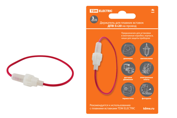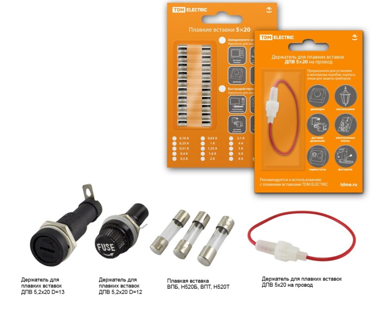 Применение:Различные шкафы и сборки в качестве элемента защиты линий. Бытовая техника: телевизоры, холодильники, печи СВЧ и т. д. Для защиты полупроводниковых устройств: датчиков движения, сенсоров, фотореле и т. д.Для защиты светильников. Материалы:Контактная группа предохранителей выполнена из никелированной электротехнической медиКонтактная группа держателей выполнена из латуни. Преимущества:Надежная и недорогая защита линий и устройств.Плавкие вставки упакованы в блистер со всей необходимой для выбора информацией и штрихкодом EAN-13. Возможность подключения держателя ДПВ на провод в разрыве линии для защиты большого количества устройств: светильников, датчиков движения и т.д.Компактный размер держателя ДПВ на провод позволяет устанавливать его в ограниченных пространствах рядом с устройствами, либо непосредственно в них. Назначение:Защита кабельных линий от перегрузок и коротких замыканий. В качестве токоограничительного элемента в широком спектре устройств. 0: