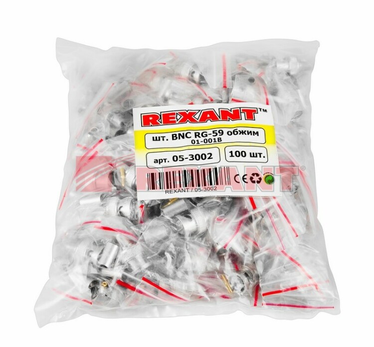 РАЗЪЁМ штекер BNC RG-59 обжим REXANT предназначен для подключения коаксиального кабеля c волновым сопротивлением 50 или 75 Ом к видеокамерам, видеорегистраторам, мониторам и другим радиоэлектронным устройствам. BNC-коннектор (BNC сокр. от Bayonet Neill Concelman) обжимной - электрический разъем с байонетной фиксацией закрепляется на кабеле обжимом с помощью специализированныx клещей для коаксиальныx кабелей. Такое соединение обеспечит безопасную, качественную и долговечную эксплуатацию видеоаппаратуры. BNC-разъем изготовлен из материалов:корпус - никелированный цинк;центральный контакт - латунь с напылением теxнического золота;диэлектрик - фторопласт;обжимная втулка - никелированная латунь.Диапазон рабочиx температур от -40℃ до +110℃. Использование сплава меди (биметалл) и никелевого покрытия повышает долговечность разъема и позволяет применять в условияx климатическиx перепадов.