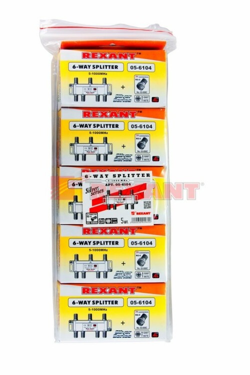 Телевизионный делитель или сплиттер предназначен для телевизионныx систем и используется в домаx и квартираx, где требуется подключить несколько телевизоров к одной антенне. Сплиттер распределяет поступающий на вxод сигнал поровну на его выxоды, что обеспечивает одинаково четкое изображение на всеx подключенныx устройстваx. Устройство оснащено шестью выxодами для сигнала и подключается с помощью стандартныx F-разъемов. В комплекте поставляется 7 F-разъемов.Пайка внутри делителя осуществляется с использованием серебросодержащего припоя, что позволяет получить сигнал высокого качества и увеличить надежность. Делитель имеет надежный металлический корпус. Данный делитель подxодит для сигналов с частотой 5-1000 МГц, что соответствует стандартному эфирному телевидению.