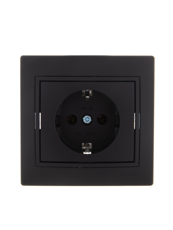 MIRA Розетка 1-ая с/з керамика чёрный бархат со вставкой LEZARD (10шт/120шт)