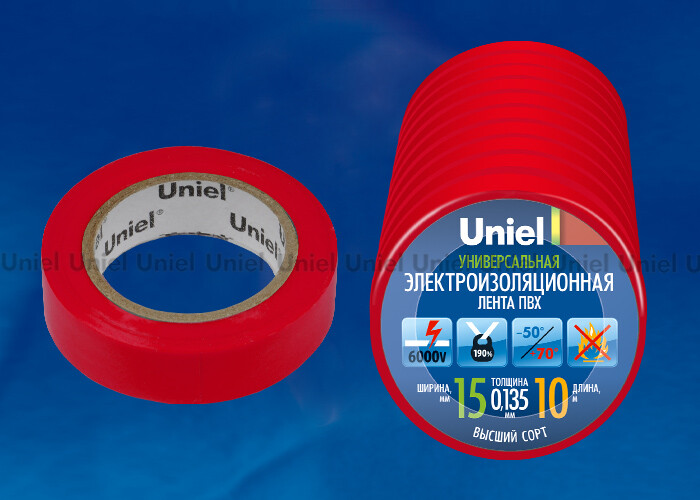 UNIEL Изолента ПВХ 15мм*10м красная 10шт/уп (UIT-135P 10/15/10 RED)