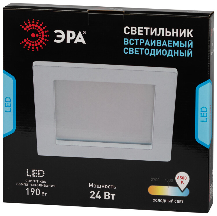 Квадратный светодиодный светильник LED 2-24-4K - замечательное решение для любой комнаты в вашем доме. Светодиодный светильник можно использовать как в качестве базового освещения, так и для создания акцентов в определенных зонах комнаты. Благодаря скрытой части корпуса светильники можно встраивать в потолок или стены, создавая разный стиль помещений. Светильник ЭРА с приятным дизайном подойдет для помещений с разным интерьером: от лофта до модерна, классицизма или минимализма. Цветовая температура составляет 4000К, она оптимальна для глаз и не заставляет их испытывать дискомфорт. Максимальная мощность лампы – 24 Вт. Корпус встраиваемого светильника изготовлен из ударопрочного алюминия, что делает его особенно удобным в использовании, а благодаря матовому стеклу, защищающему лампу, свет рассеивается и становится мягким. Диаметр отверстия, требуемого для установки светильника составляет 265 мм, а размер самого светильника – 300х300 мм. Купив точечный светильник бренда ЭРА, вы останетесь довольны и сможете создать приятную атмосферу в доме.
