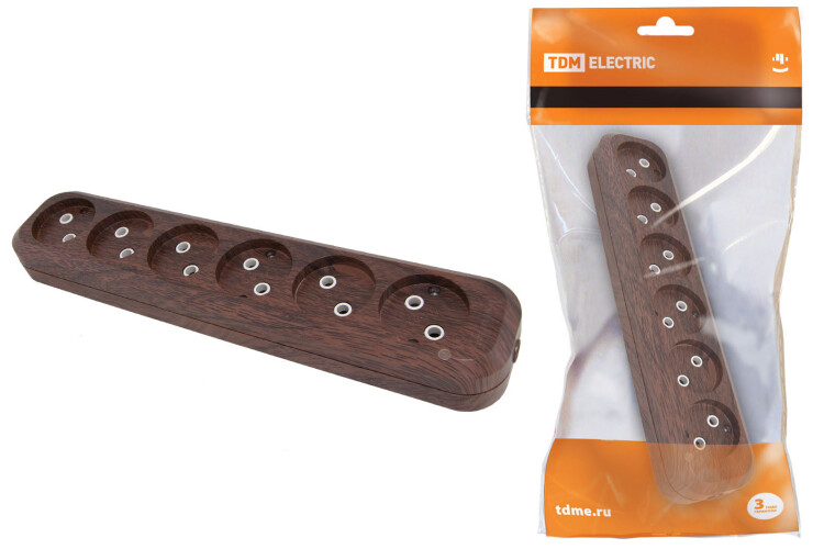 ЭКО Колодка 6 гнезд б/з 10А 250В бук TDM (14/140шт)