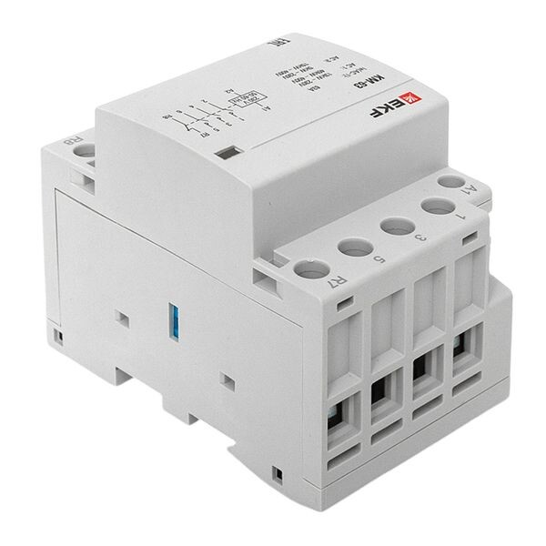 Модульные контакторы представляют из себя контактор в классическом корпусе модульного оборудования. Он состоит из неподвижных контактов, подвижных контактов, которые закреплены в подвижной части магнитной системы. Неподвижная часть магнитной системы закреплена жестко в корпусе КМ. Пружина препятствует смыканию контактов. При подаче напряжения на катушку управления в магнитной системе контактора возникает магнитное поле, которое, преодолевая сопротивление пружины, смыкает магнитную систему и замыкает контакты. При отключении напряжения с катушки управления пружина размыкает контакты. Возможна коммутация алюминиевым и медным проводом.