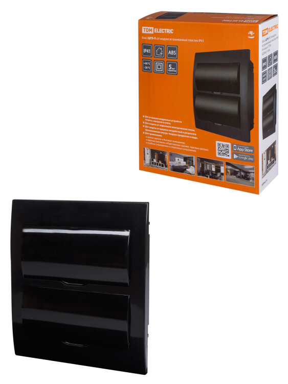 Назначение:br/Для монтажа модульной аппартатуры.Для защиты персонала от поражения электрическим током при эксплуатации.br/Применение:br/В жилых домах и застройках сельской местности.В коттеджных поселках.В лечебных, образовательных учреждениях.В офисах.В производственных помещениях.В объектах строительства и инфраструктуры.br/Преимущества:br/Для удобства монтажа на боковых и задней стенках корпуса выштампованы легкоудаляемые вводы для кабеля.Специальный замок-защелка позволяет фиксировать дверцу в открытом положении.Все шурупы, входящие в состав бокса, имеют универсальную шляпку. Она подходит как под крестовую, так и под плоскую отвертки.Предусмотрен специальный кронштейн крепления DIN-рейки, который имеет 6 положениц высоты и позволяет устанавливать оборудование с глубиной от 6до25 ммbr/Материалы:br/Ударопрочный, не поддерживающий горение АБС-пластик, устойчивый к ультрафиолету.br/