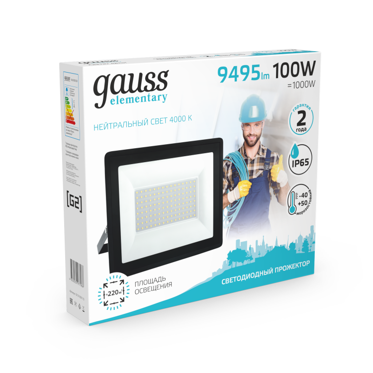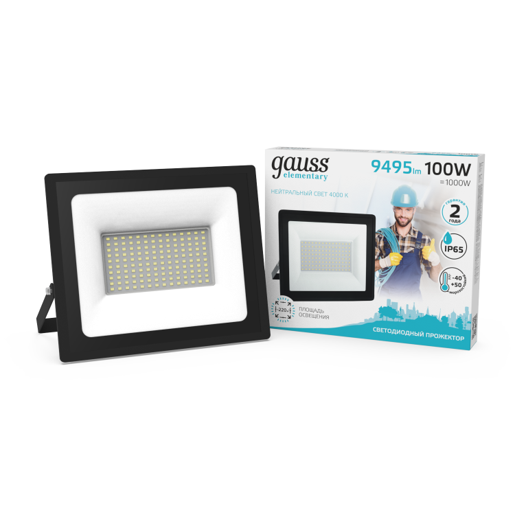 Gauss Прожектор Elementary 100W 9475lm 4000К 175-265V IP65 черный LED