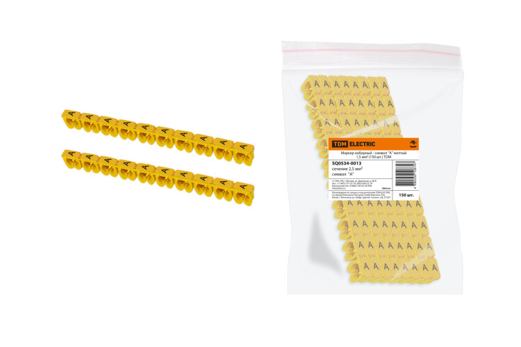 Применение:В электрощитах.В промышленных установках.На объектах электроснабжения. Материалы:Изготовлены из негорючего полиамида (PA66), устойчивого к температурным воздействиям и действию агрессивных сред (масла, смазочные материалы и т. д.).Преимущества:Открытый профиль маркера позволяет производить установку на уже подключенные провода.Боковые штифты позволяют создать ровные группы маркеров на кабеле.Быстрое и надежное крепление маркеров на кабеле. Международная система цветовой кодировки маркеров. Назначение:Для разметки кабеля в распределительных щитах, местах подключения и т. д. Упаковка:Маркер наборный - символ (100 шт.) по 10 шт.Маркеры наборные комплект цифр (100 шт.) по 10 шт.
