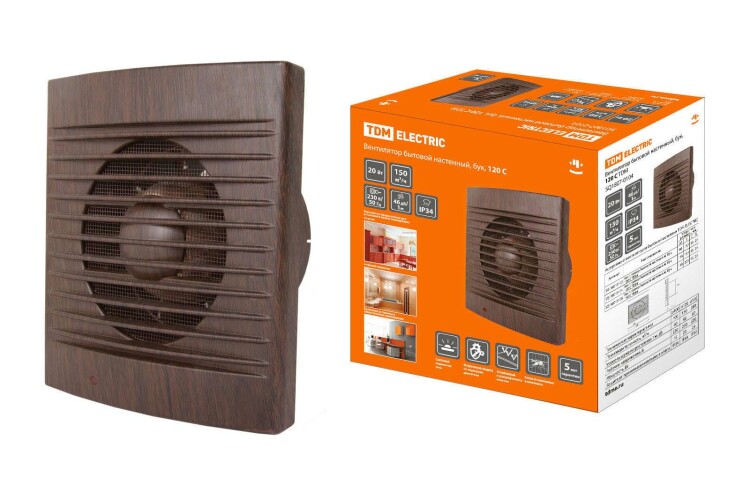 ЭКО Вентилятор настенный для вытяжки D120мм С бук TDM (1/10шт)