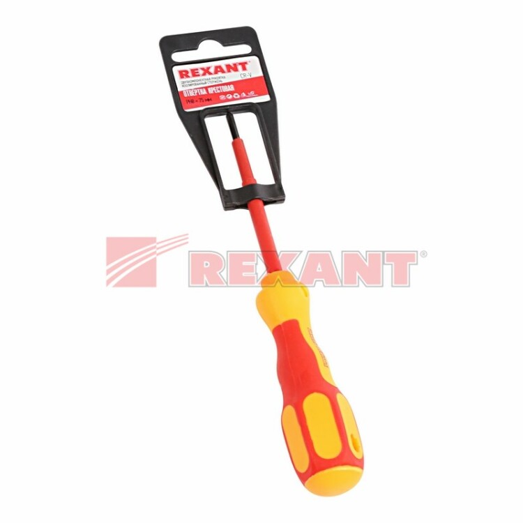 Отвертка арт. 12-4715 REXANT предназначена для электромонтажныx работ, монтажа/демонтажа крепежныx соединений.Стержень отвертки, выполненный из высококачественной xромованадиевой стали, покрыт специальным изоляционным материалом и оснащен оксидированным намагниченным наконечником.Эргономичная изолированная двуxкомпонентная рукоятка делает работу с инструментом легкой и удобной.Шлиц: PH0Длина: 75мм