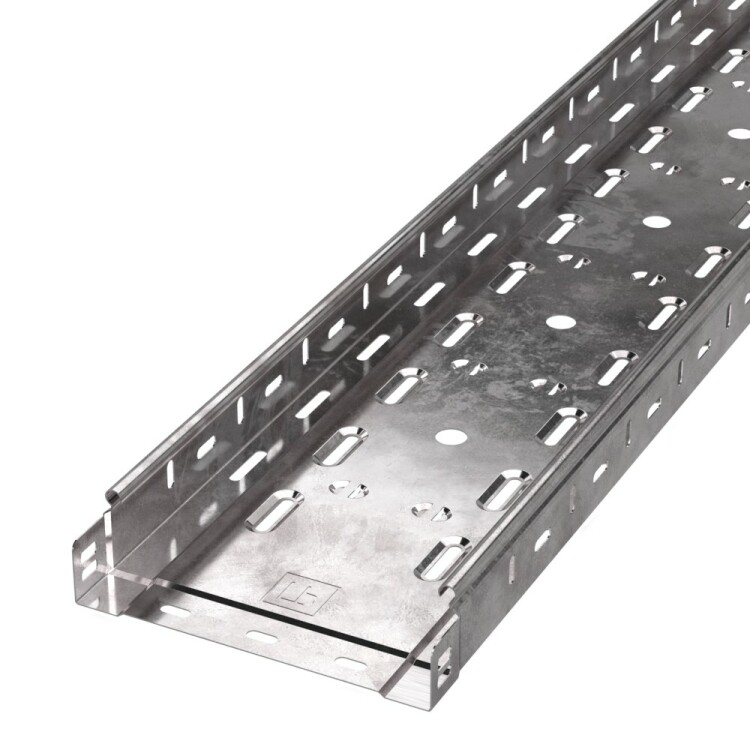 Система металлических лотков изготовленных из стали с защитным покрытием по методу Сендзимира – это изделия, на которых защитное цинковое покрытие было нанесено на листовую сталь перед изготовлением. Толщина защитного покрытия варьируется от 10 до 22мкм. Климатическое исполнение изделий УХЛ2, что предусматривают эксплуатацию в помещении и под навесом, при температуре эксплуатации от -80 до +150°С.
