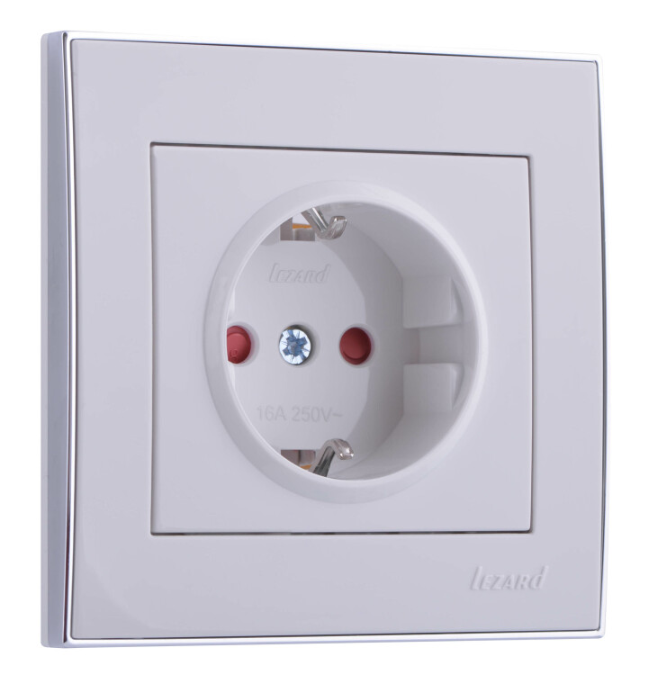 RAIN Розетка 1-ая с защитой от детей керамика белый с бок. вст. хром LEZARD (10шт/120шт)