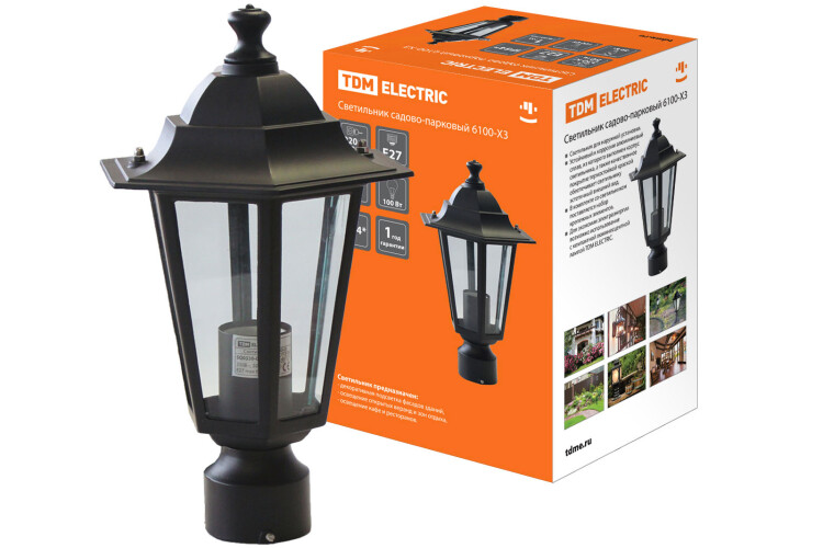 Светильник 6100-03 садово-парковый шестигранник, 100Вт, на опору, черный TDM