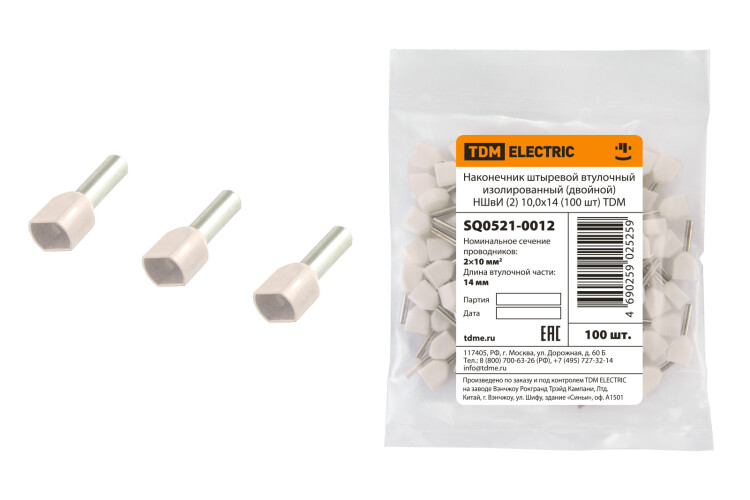 Наконечник штыревой втулочный изолированный (двойной) НШвИ (2) 10,0х14 (100 шт) TDM