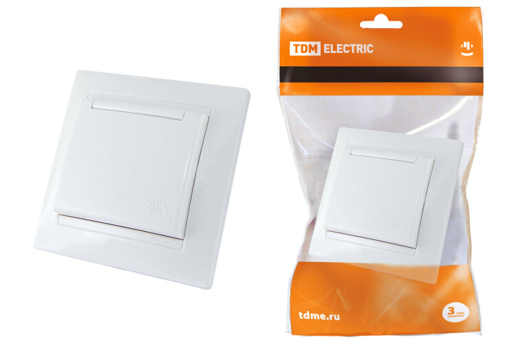 ЛАМА Розетка 1-ая с/з с з/ш с крышкой 16А белый TDM (10/120шт)