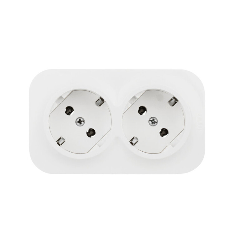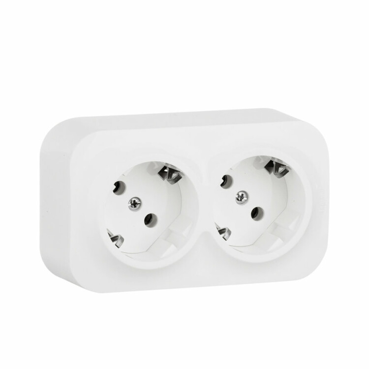 Двойная розетка с заземлением, со шторками Legrand Quteo, цвет белый, для открытого монтажа. Максимальный ток 16 А, максимальная мощность 3680 Вт. Применяется в зданиях, оборудованных для повышения безопасности проводкой с заземлением (с защитным проводником). Рекомендуются к применению в помещениях в которых могут быть дети. Шторки осуществляют защитную функцию путём ограничения доступа к токоведущим контактам. Доступ открывается только при подключении вилки.