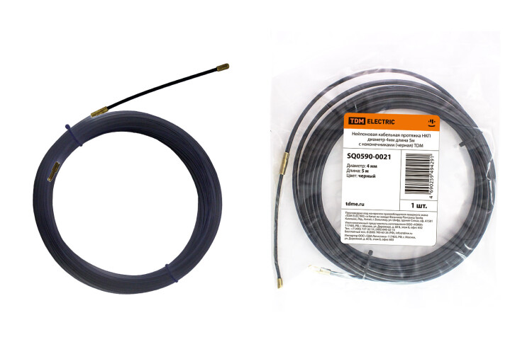 Нейлоновая кабельная протяжка НКП диаметр 4мм длина 5м с наконечниками (черная) TDM(1/10шт)