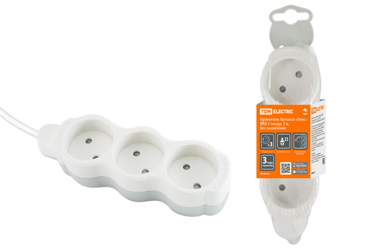 ЛЮКС Удлинитель 3 гнезда б/з с з/ш 5м 10А 250В (ПВС 2х0,75мм2) белый TDM(20)