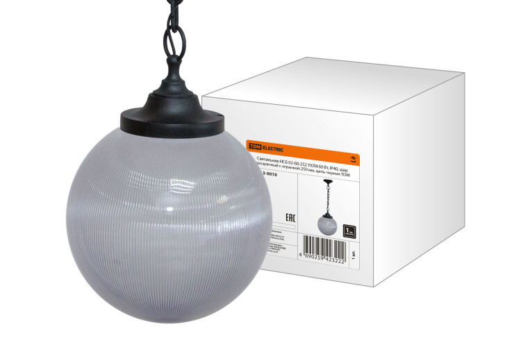 Светильник НСБ 02-60-252 УХЛ4 60 Вт, IP40, шар прозрачный с огранкой 250 мм, цепь черная TDM