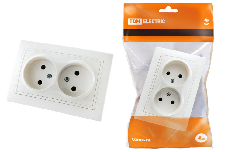 ТАЙМЫР Розетка 2-ая б/з 10А белый TDM (10/100шт)