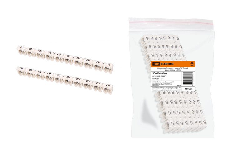 Применение:В электрощитах.На объектах электроснабжения.В промышленных установках. Материалы:Изготовлены из негорючего полиамида (PA66), устойчивого к температурным воздействиям и действию агрессивных сред (масла, смазочные материалы и т. д.).Преимущества:Боковые штифты позволяют создать ровные группы маркеров на кабеле.Открытый профиль маркера позволяет производить установку на уже подключенные провода.Быстрое и надежное крепление маркеров на кабеле. Международная система цветовой кодировки маркеров. Назначение:Для разметки кабеля в распределительных щитах, местах подключения и т. д. Упаковка:Маркер наборный - символ (100 шт.) по 10 шт.Маркеры наборные комплект цифр (100 шт.) по 10 шт.