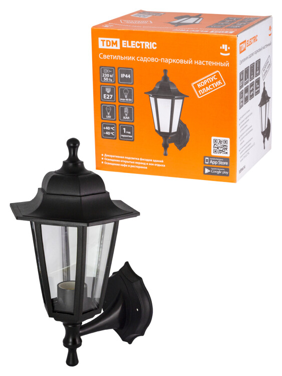 Светильник садово-парковый НБУ 06-60-001 шестигранник, настенный, пластик, черный TDM