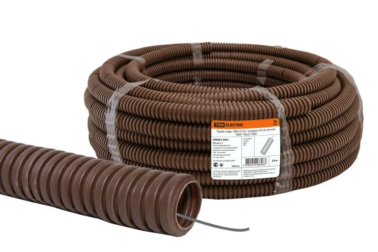 "TDM" Труба гофр. ПВХ бук легкая с зондом d16мм 25м/уп