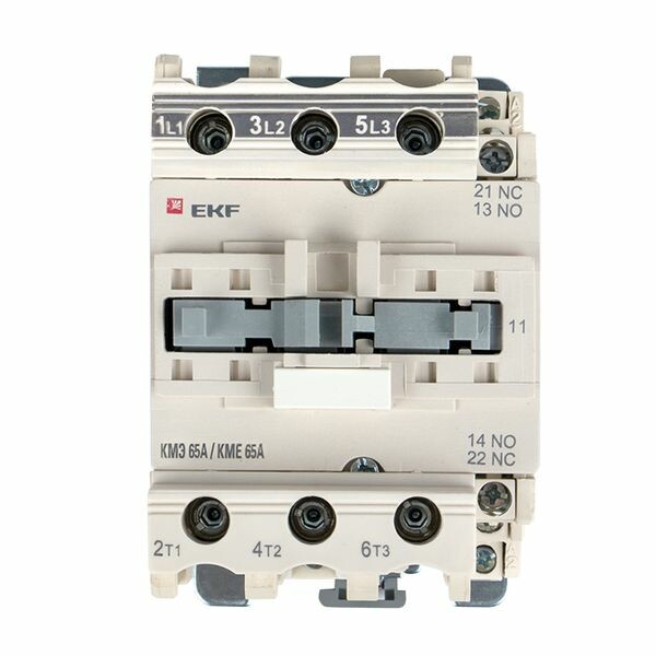 Контакторы КМЭ EKF PROxima состоят из корпуса, закрепленных в нем неподвижных контактов, подвижных контактов, которые закреплены в подвижной части магнитной системы. Неподвижная часть магнитной системы закреплена жестко в корпусе КМЭ. Пружина препятствует смыканию контактов. При подаче напряжения на катушку управления в магнитной системе контактора возникает магнитное поле, которое, преодолевая сопротивление пружины, смыкает магнитную систему и замыкает контакты. При отключении напряжения с катушки управления пружина размыкает контакты. Возможна коммутация алюминиевым и медным проводом. Основное назначение контактора КМЭ – частые дистанционные включения и выключения силовых электрических цепей в нормальном режиме работы.