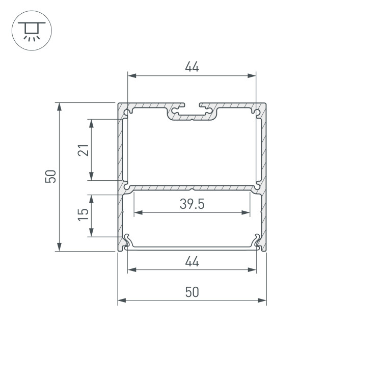 Алюминиевый профиль для светодиодных лент и линеек. Цвет - белый (порошковая окраска RAL9003). Габаритные размеры (L×W×H): 2000x50x50 мм. Ширина площадки для ленты 39,5 мм. Отсек для БП 44х21 мм. Экраны, заглушки и другие аксессуары приобретаются отдельно. Цена за 1 метр. Кратность заказа поставщику: 2 м.