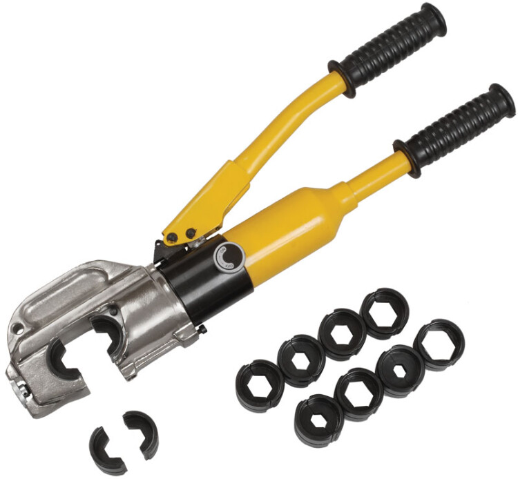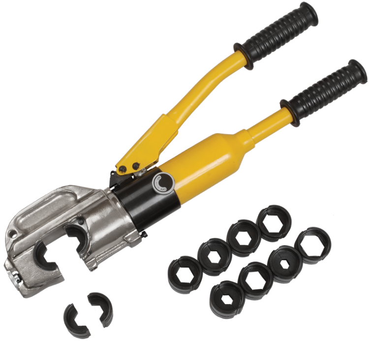 Гидравлические прессы позволяют создавать механические соединения типа кабельная жила-гильза или кабельная жила-наконечник с помощью механической опрессовки. Прессы снабжены сменными матрицами, предназначенными для различных сечений жил.