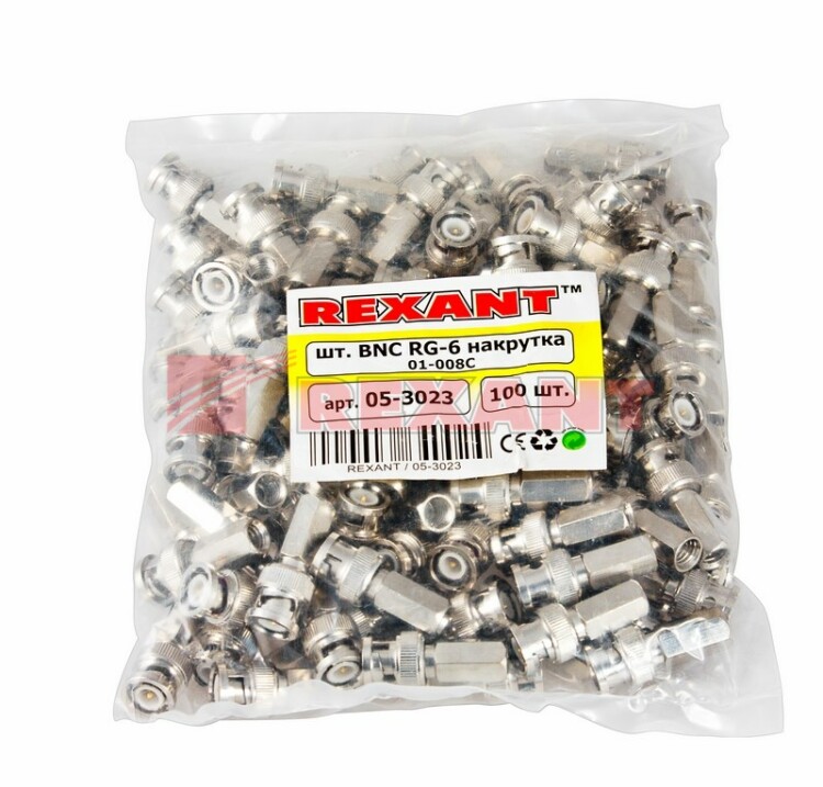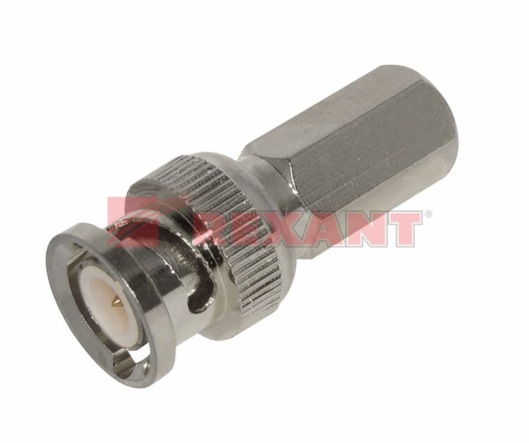 РАЗЪЁМ штекер BNC RG-6 накрутка REXANT предназначен для подключения коаксиального кабеля c волновым сопротивлением 50 или 75 Ом к видеокамерам, видеорегистраторам, мониторам и другим радиоэлектронным устройствам. BNC-коннектор (BNC сокр. от Bayonet Neill Concelman) накрутка - электрический разъем с байонетной фиксацией закрепляется на кабеле путем накрутки на кабель. Этот способ крепления значительно проще и быстрее, чем пайка, но его надежность и качество соединения остаются на неизменно высоком уровне. Такое соединение обеспечит безопасную, качественную и долговечную эксплуатацию видеоаппаратуры. BNC-разъем изготовлен из материалов:корпус - никелированный цинк;центральный контакт - латунь с напылением технического золота;диэлектрик - фторопласт;кольцевая прокладка - никелированное железо.Диапазон рабочих температур от -40℃ до +110℃. Использование сплава меди (биметалл) и никелевого покрытия повышает долговечность разъема и позволяет применять в условиях климатических перепадов.