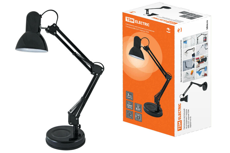 Светильник настольный на основании 2 колена 60Вт, E27 черный TDM