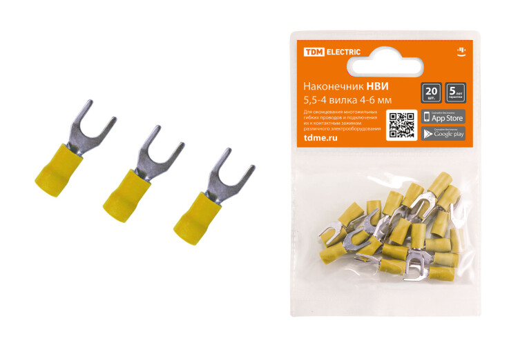 Наконечник НВИ 5,5-4 вилка 4-6мм (20шт) желтый TDM