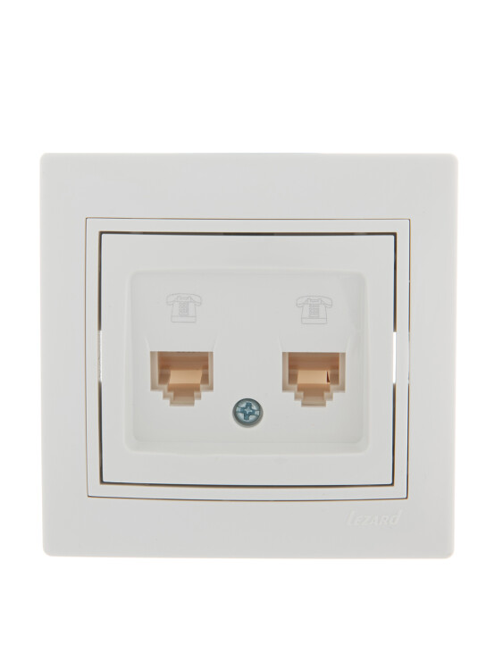 MIRA Розетка 2-ая телефонная евро белый с белой вставкой LEZARD (10шт/120шт)