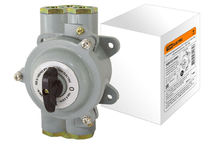 Пакетный переключатель ПП 3-100/Н2 3П 100А 220В, силуминовый корпус, IP56 TDM