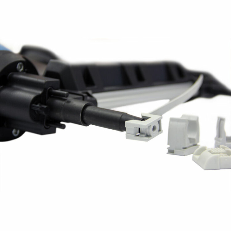 Комплектация: Гвоздезабиватель: 1 шт. Аккумуляторная батарея: 2 шт. Зарядное устройство: 1 шт. Адаптер 220V AC-6V DC: 1 шт. Пластиковый кейс: 1 шт. Инструкция: 1 шт. Защитные очки: 1 шт. oua GSN50E является наиболее удачной моделью для электромонтажа в линейке газовых монтажных пистолетов Toua. Основной особенностью этого инструмента является отсутствие прижимной скобы и узкий ствол для электромонтажа. В данной модификации сам ствол выполняет роль прижимного механизма, защищающего от «выстрела в воздух». Благодаря этому пистолет имеет очень компактные размеры и может использоваться для монтажа широкого диапазона клипс от различных производителей диаметром от 16 мм. Наличие регулировки заглубления делает выстрел из данного инструмента мягче и уменьшает вероятность раскалывания пластика при монтаже кабельканалов. Узкий ствол упрощает прицеливание в монтажное отверстие.