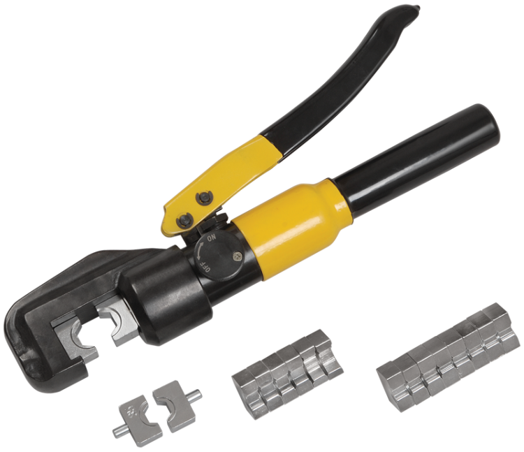 Гидравлические прессы позволяют создавать механические соединения типа кабельная жила-гильза или кабельная жила-наконечник с помощью механической опрессовки. Прессы снабжены сменными матрицами, предназначенными для различных сечений жил.
